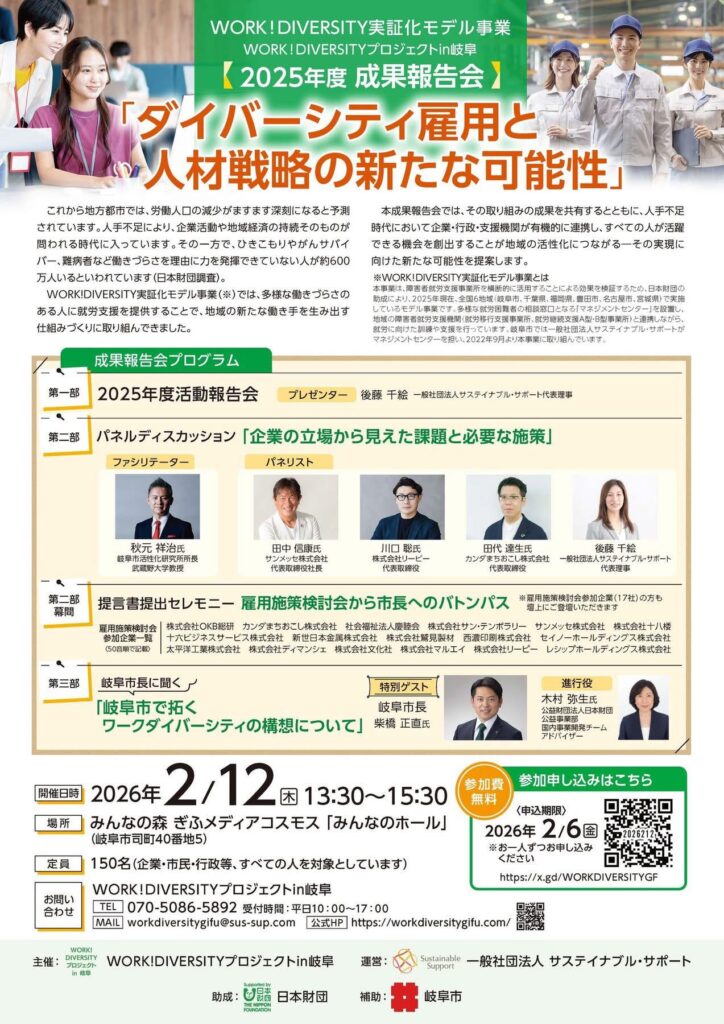 2025年度成果報告会開催のお知らせ WORK!DIVERSITYプロジェクトin岐阜 2025年度 成果報告