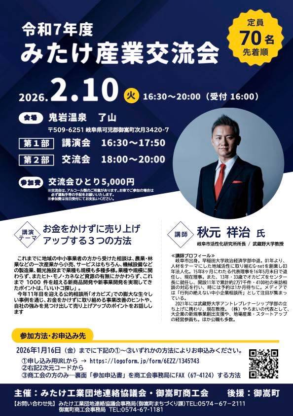 御嵩町内の中小事業者の方々を対象にセミナーをさせていただきます。テーマはズバリ「売り上げアップの方法」です。