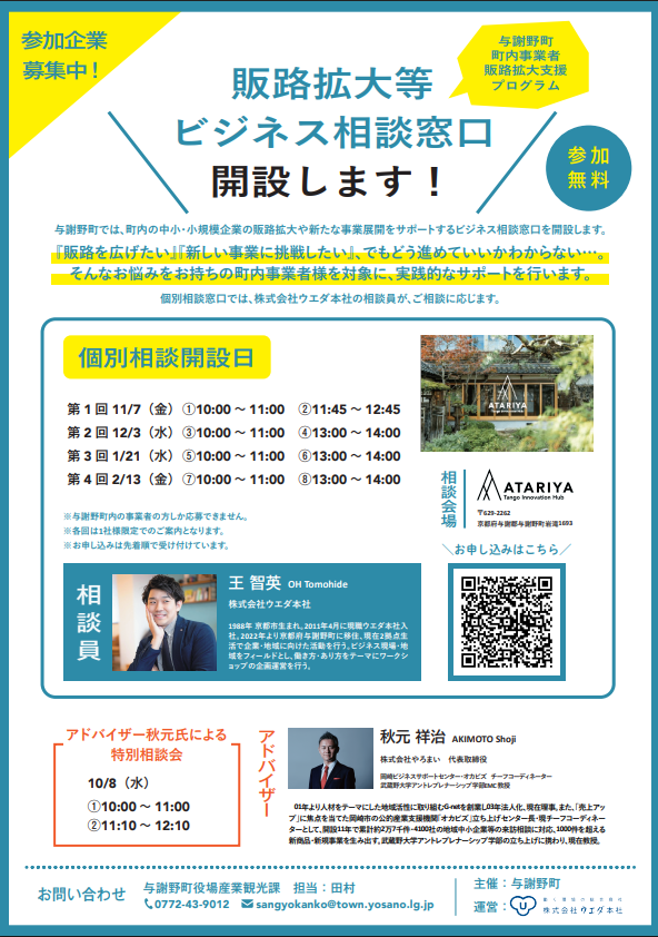 京都府与謝野町のビジネス相談窓口のアドバイザーを務めます